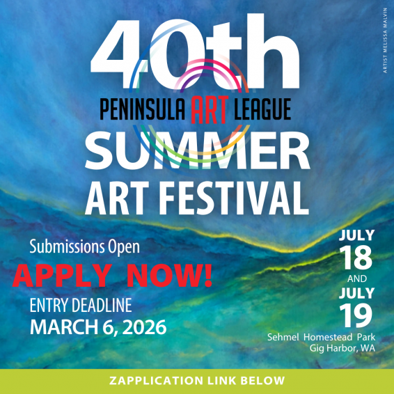 The Peninsula Art League (PAL) invites artists from across the country to participate in its 40th Annual Summer Art Festival, a milestone celebration held in the beautiful natural setting of Sehmel Homestead Park in the heart of Puget Sound.