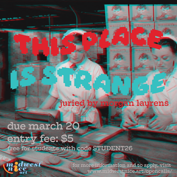 midwest nice art is excited to announce our spring call for art for this place is strange, a virtual exhibition. for better or worse, the midwest has a “nice” reputation, with friendly smiles, polite small talk, and a whole lot of “ope, sorry!” but underneath that kind surface level, things can get a little… strange.